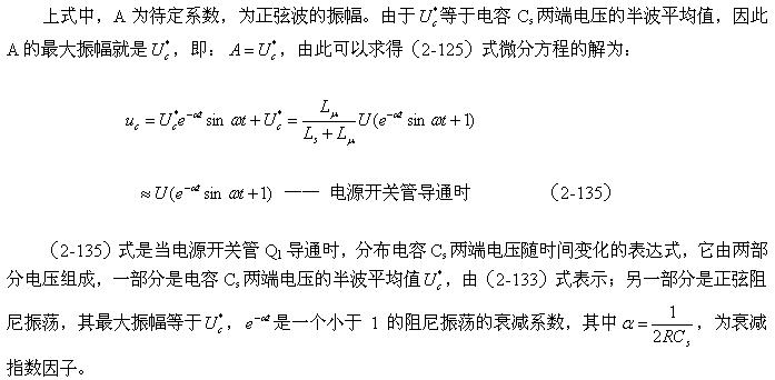直到t2時(shí)刻,流過(guò)Ls的電流等于0,電容器Cs充電結(jié)束,同時(shí)Cs兩端的電壓也達(dá)到最大值;然后電容按正弦曲線開始放電,流過(guò)Ls的電流開始反向,到t3時(shí)刻,Cs兩端的電壓又與輸入電壓U相等,電容停止放電,但流過(guò)Ls的電流不能為0,Ls將又產(chǎn)生反電動(dòng)勢(shì)給電容Cs進(jìn)行反向充電,所以Cs兩端的電壓低于輸入電壓U。