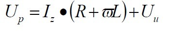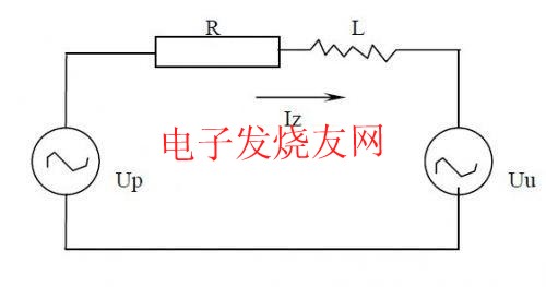 光伏發(fā)電并網(wǎng)運(yùn)行時(shí)的電路原理如圖2所示。Up為逆變器輸出電壓,Uu為電網(wǎng)電壓,R為線路電阻,L為串聯(lián)電抗器,Iz則為回饋電網(wǎng)的電流。為保證回饋功率因數(shù)為1,回饋電流的相位必須與電網(wǎng)電壓的相位一致。以電網(wǎng)電壓Uu為參考,則Iz與Uu同相位,其矢量圖如圖3所示。內(nèi)阻R兩端的電壓UR與電網(wǎng)電壓相位一致,而電抗器兩端電壓UL的相位則落后于UR90º.由此可以求得UP的相位和幅值: