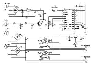 stc12c4052ad單片機自帶A/D轉(zhuǎn)換器,具有高速、高可靠性,強抗靜電(過4kV快速脈沖干擾),強抗干擾,寬電壓,不怕電源抖動等特點。它完成同步信號檢測(P3.2口,int0中斷輸入端)、控制信號輸出(P3.4、P3.5)、輸出強度調(diào)整(P1.1)和工作狀態(tài)指示等功能;整流橋Z1、三端穩(wěn)壓塊u2等構(gòu)成穩(wěn)壓電源,為整個控制電路提供電源;r1、r2、Q2等完成交流同步信號的輸入,其中,r1、C7、r2、C8濾除高頻脈沖的干擾,同步信號輸入到單片機的int0端;整流橋z2、z3、Q3、Q4等構(gòu)成獨立的電源,分別驅(qū)動可控硅SCR1、SCR2;光耦G1、G2將低壓控制電路與高壓驅(qū)動電路隔離,既保證了控制芯片和人身安全,同時具有抗干擾作用;三極管Q1及周圍電路,用于上電延時。上電時,C14不能突變,所以Q1處于截止狀態(tài),Q3、Q4都不能導(dǎo)通,在單片機初始化完成后,P3.4、P3.5處于正常狀態(tài)時,Q1進入導(dǎo)通狀態(tài),避免了SCR1和SCR2同時導(dǎo)通。