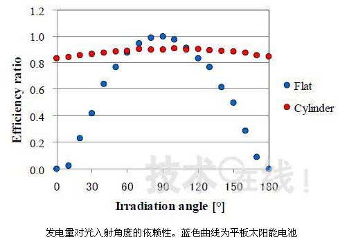 (1)相對于光的入射角度的變化,發電輸出的變化變小