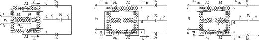 為了避免上述這種傳統CDR拓撲結構的不足,PengC提出了一種IM-CDR電路拓撲,如圖1(b)所示。它將以往的CDR整流電路中的3個分立磁性元件(輸出濾波電感和變壓器)集中繞制在同一副磁芯中,結果大大地減小了變流器的體積和重量,但是,由于它副邊仍然有較多的繞組數和連接端子,使得這種CDR拓撲的應用受到了限制。