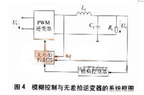 將輸出電壓和濾波電感電流反饋,即電壓誤差和電感電流作為輸入模糊變量,可以實現(xiàn)逆變器的模糊控制,整流性負載時,其輸出電壓總諧波失真(total harmonic distortion,TH)小于5%,將模糊控制與無差拍控制相結合,可用來補償由于非線性負載導致的電壓降落,其系統(tǒng)如圖4所示。模糊控制從模仿人的思維外特性入手,模仿人的模糊信息處理能力。它對系統(tǒng)的控制是以人的經(jīng)驗為依據(jù)的,而人的經(jīng)驗正是反映人在思維過程中的判斷、推理、歸納。理論上已經(jīng)證明,模糊控制可以任意精度逼近任何線性函數(shù),但受到當前技術水平的限制,模糊變量的分檔和模糊規(guī)則都受到一定的限制,隸屬函數(shù)的確定還沒有統(tǒng)一的理論指導,帶有一定的人為因素,因此,模糊控制的精度有待于進一步提高?! ?/p>