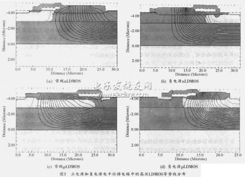 本文設計了一種應用于負電源的電平位移電路。實現從0~8V低壓邏輯輸入到8~-100V高壓驅動輸出的轉換。分析了該電路的結構和工作原理。基于此電路結構設計了滿足應用要求的高壓薄膜SOI LDMOS器件。分析了器件的工作狀態以及耐壓機理,并利用工藝器件聯合仿真對器件的電學特性進行了優化設計。