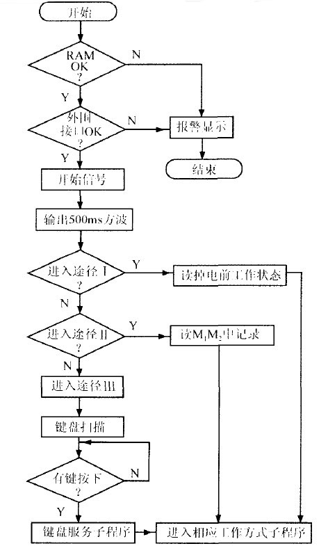 途徑I為掉電重起方式。即系統(tǒng)在掉電后,能記錄當(dāng)前工作方式,來(lái)電后直接返回到原狀態(tài)。