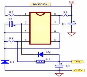 ◇內部集成700V高壓功率開關 ◇電器控制器電源