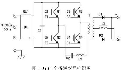 圖 1 是全橋 IGBT 逆變焊機主電路簡圖,由圖 1 可見,三相 380V電源進入焊機首先要經(jīng)過三相整流橋QL1 整流和 C2 濾波,濾波電容器的等效容量一般在 50~1000µf 之間,在采用大電容器濾波的整流濾波電路中,整流二極管導通時間較短,濾波電容充電電流瞬時峰值大,電流波形為近似尖脈沖,使 50Hz 正弦電流波形發(fā)生畸變,產(chǎn)生諧波電流。