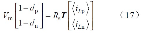 可以證明,式1 在任意區間的兩種開關順序都成立,并且只要電路工作在連續導通的模式,該等式即能準確反映出穩態電路的輸入電壓、輸出電壓和占空比三者之間的固定關系,與所采用的控制方案無關。因此式1 即為該整流器的狀態方程。