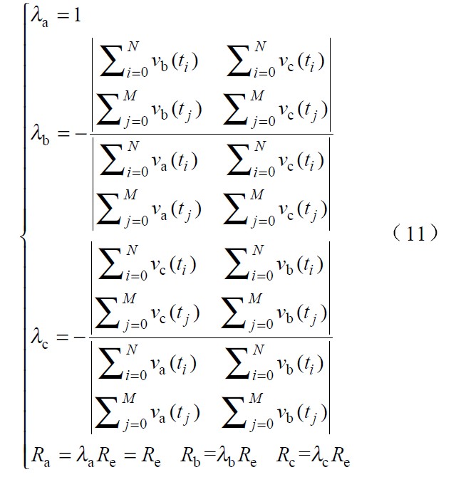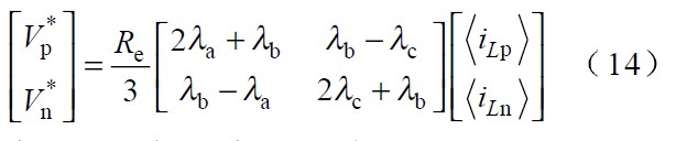 式 (11 )為相電壓不對稱系數的計算公式,其中λa ,λb 和λc 為相電壓不對稱系數,Re 為標準等效電阻。可見,當電網電壓不對稱時,為使各相電流仍能正確跟蹤對應相電壓,各相等效電阻值是不同的。特殊地,如果三相電壓對稱,λa=λb=λc =1 ,則Ra=Rb=Rc=Re.