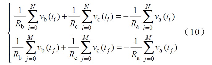 由于電網電壓可能存在各種干擾,為使計算結果盡可能精確,可將一個或幾個周期內的n 個采樣電壓分為多組,取其中的兩組來計算相電壓不對稱系數。對式(9) 按該兩組相加,可得: