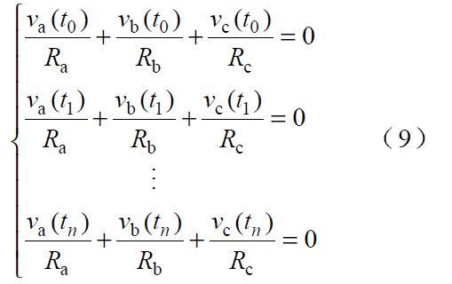 三相輸入電壓不對稱時,假設各相電流跟蹤各自的相電壓此,時可令從輸入端看進去各相對中線的等效電阻為Ra ,Rb 和Rc 。因系統采用三相三線制在任意時刻均有: