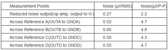 表2. 圖1電路使用MAX6143 2.5V電壓基準(zhǔn)源時(shí)所測(cè)得的噪聲電壓