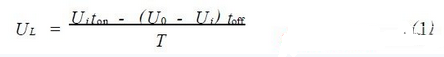 其中,UL為電感兩端電壓在一個(gè)開(kāi)關(guān)周期內(nèi)的平均值;U0為輸出電壓;Ui為輸入電壓;T為開(kāi)關(guān)周期;ton為Q3處于通態(tài)的時(shí)間;toff為Q3處于斷態(tài)的時(shí)間。令UL=0,在電感電流連續(xù)的工作過(guò)程中有: