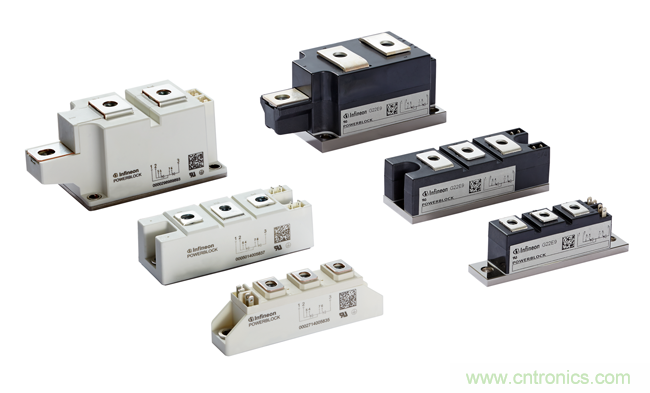 新型PowerBlock模塊提供的封裝底板寬度為20mm、34mm 或 50mm。每種封裝均提供五種方便整流器設(shè)計(2種晶閘管/晶閘管TT、2種晶閘管/二極管TD和1種二極管/二極管DD)的模塊。英飛凌提供的產(chǎn)品涵蓋主要電流額定值的每種尺寸,所有型號均提供1600V阻斷電壓。英飛凌是歐洲唯一一家可提供滿足不同應(yīng)用需求的20 mm、34 mm和50 mm模塊的供應(yīng)商;在此類模塊中,采用焊接技術(shù)的模塊是針對成本優(yōu)化的工業(yè)標(biāo)準解決方案,而采用壓力接觸技術(shù)的模塊則是為滿足高電流應(yīng)用和高可靠性的需求。