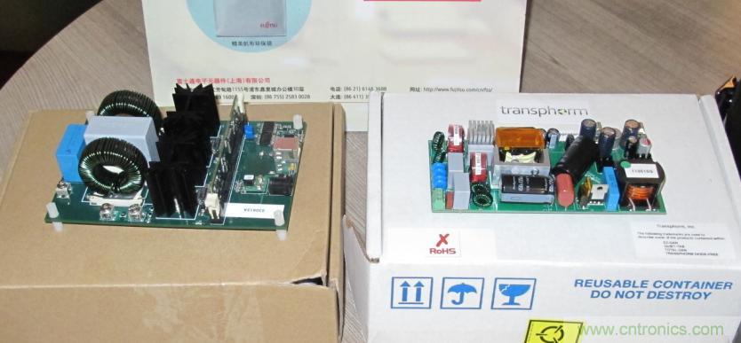 在演講現(xiàn)場,富士通電子展示了兩款基于HEMT器件的電源模塊方案。“我們的PFC+LLC電源與類似的競爭方案相比,電路板尺寸可以縮減45%,在滿載和10%的負載下,我們可以分別提高1.7%和3%的效率。對于很多效率要求苛刻的應(yīng)用來說,這是一個非常大的提升。”Eric指出。