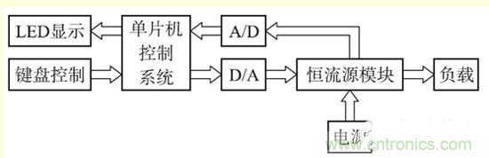 本論文設計了基于單片機的數控恒流源,該系統由恒流源主電路和單片機最小系統組成,其中單片機最小系統主要由單片機控制單元、A/ D 和D/ A 轉換模塊以及負載及鍵盤顯示模塊組成,系統結構框圖如圖1所示。單片機控制系統以單片機AT89S52 為核心,高精度12 bit A/ D 芯片AD1674 實現采樣輸入,12 bitD/ A 芯片DAC1230 產生控制輸出,實現了輸出電流的精確設定和檢測,系統還設置了串口通訊功能。