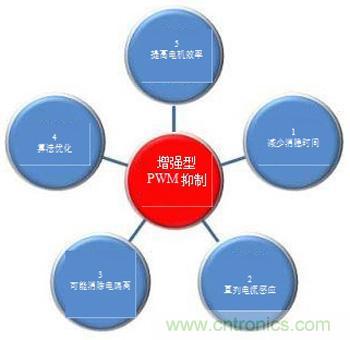 我之前提到過這一優勢——算法優化。利用增強型PWM抑制,不需要再復制或計算相電流,因為可直接得到現成答案。只需很少的軟件就能有效地運行電機。