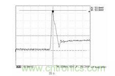圖中所示的是實際測試的PFC 升壓二極管關斷瞬間的反向恢復電流(不加吸收的情況下),在圖4 中,該反向恢復電流主要通過C6、VD1、VT2 構成回路,形成差模輻射,另外,由于由于引線電感的存在,很小一部分的電流會通過散熱器與開關管VT2 之間的耦合電容C7 向外流,形成共模輻射。