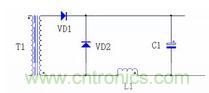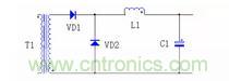 DC/DC 的整流二極管和續流管的反向恢復電流會導致二極管的反向電壓出現很高的電壓尖峰,下圖 7 是正激電路的輸出濾波電路。