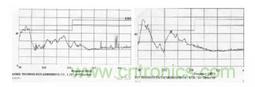 下面圖 9 是采取在PFC 開關管散熱器對PFC 輸出地加電容與不加電容輻射強度的對比。