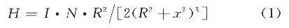 圓形線圈的磁場(chǎng)強(qiáng)度(在近場(chǎng)耦合有效的前提下,近場(chǎng)耦合有效與否的判斷在1.3節(jié))可用式(1)進(jìn)行計(jì)算: