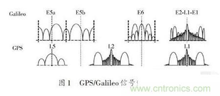 設計接收機首先要考慮的就是頻帶的選擇。如圖1所示,GPSL1/L5和GalileoE1/E5a中心頻率相同,如果選擇該頻段的話,那么很多的元器件可以得到復用,從而極大地減少了研發和生產成本,同時也可以減小接收機的體積。