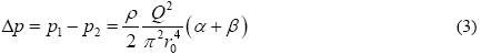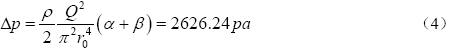 通過上式可以通過壓差來計算流量,為了平衡擴張和壓縮作用以及盡量減少能量損失,當(dāng)θ=7°,φ=0.13,ζ=0.02,且流量Q為 61.1L/min,即在該管徑下流速為1m/s時,對異徑管尺寸進行優(yōu)化為:a=0.4r0,b=0.8r0,a=2.9264,b=3.1109,α+β=6.0373,α/β=0.9407