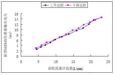 新型MEMS傳感器的標(biāo)定是通過渦輪流量計來實現(xiàn)的。采用串聯(lián)在系統(tǒng)中的CLG15耐高壓渦輪流量計(名義精度為0.5%)和SO64C-1型流量測試儀進行標(biāo)定。