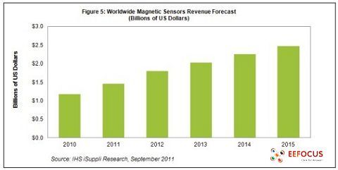 • 2015年硅磁傳感器銷售額將達到24.7億美元