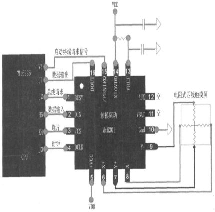 觸摸控制器是一個(gè)小型的微控制器芯片,它位于觸摸傳感器和嵌入式系統(tǒng)控制器之間。觸摸控制器提取來自觸摸傳感器的信息,并將其轉(zhuǎn)換成嵌入式系統(tǒng)控制器能夠理解的信息。該芯片可以裝配到系統(tǒng)內(nèi)部的控制器板上,也可以粘貼到玻璃觸摸傳感器上的柔性印刷電路上。