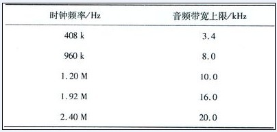 表1  取樣時鐘頻率與音頻帶寬上限對應表