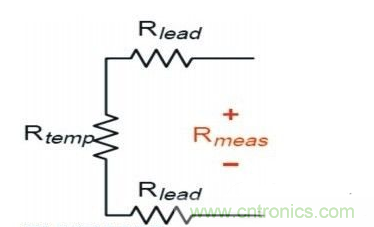 與熱敏電阻相似,鉑電阻溫度傳感器(RTD)也是用鉑制成的熱敏感電阻。當通過測量電壓計算RTD 溫度時,數字萬用表用已知電流源測量該電流源所產生的電壓。這一電壓為兩條引線(Vlead)上的壓降加RTD上的電壓(Vtemp)。例如,常用RTD 的電阻為100Ω,每1℃僅產生0.385Ω的電阻變化。如果每條引線有10Ω電阻,就將造成26℃的測量誤差,這是不可接受的。所以應對RTD作4線歐姆測量。
