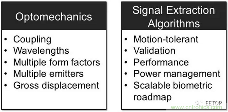 圖3:集成光學心率傳感器的主要挑戰