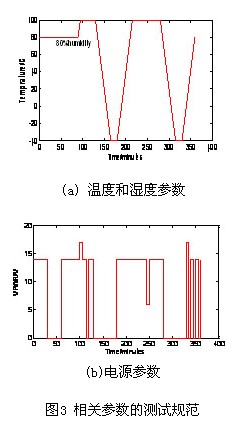 根據PCM各種工況下的極限環(huán)境,確定了溫度、濕度、電源電壓等重要參數,建立了一套周期為6小時的測試規(guī)范,具體如圖3所示,并通過了利用DSPACE快速開發(fā)平臺和NI虛擬儀器平臺建立的耐久性測試實驗平臺的檢驗。